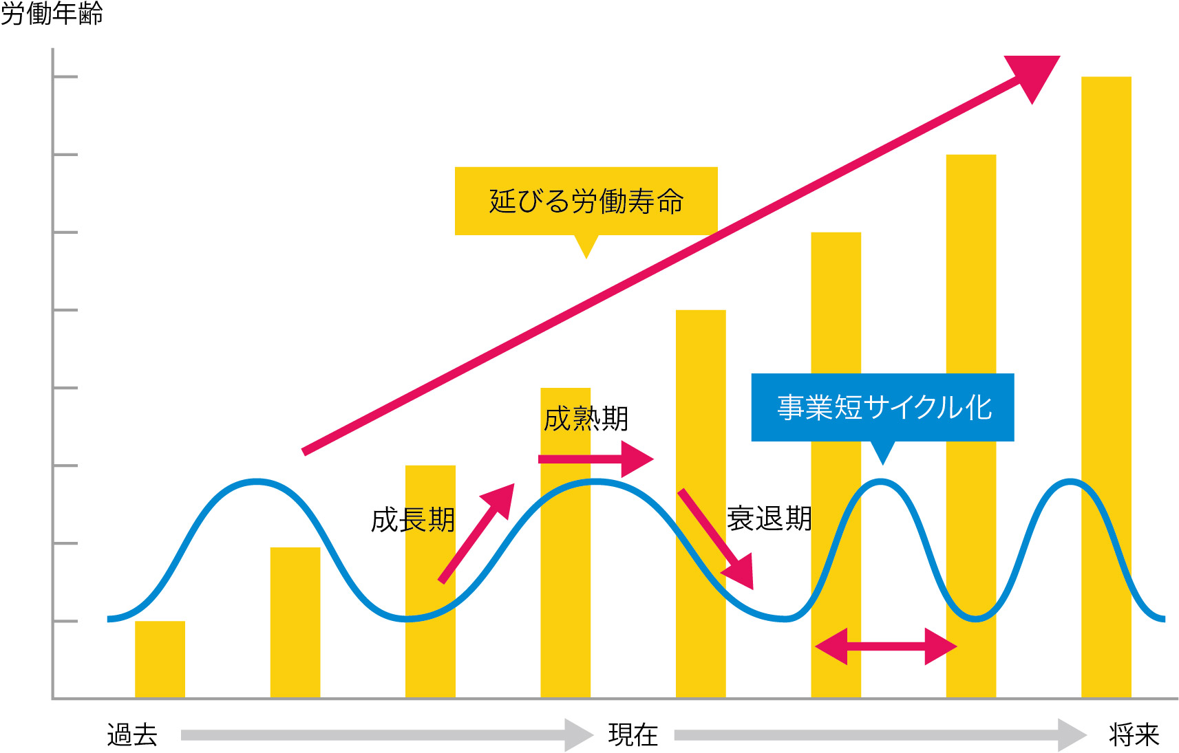 事業の短サイクル化、労働寿命の長期化によって、今後、雇用の流動化は避けられません。
